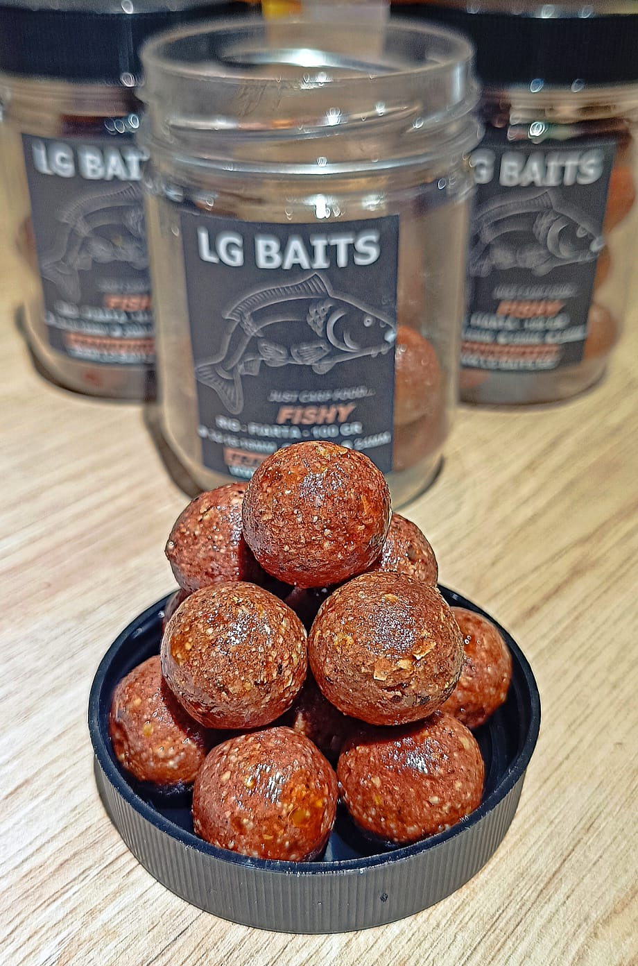 - boilies pe bază de faina de peste  si aluna tigrata , in doze egale